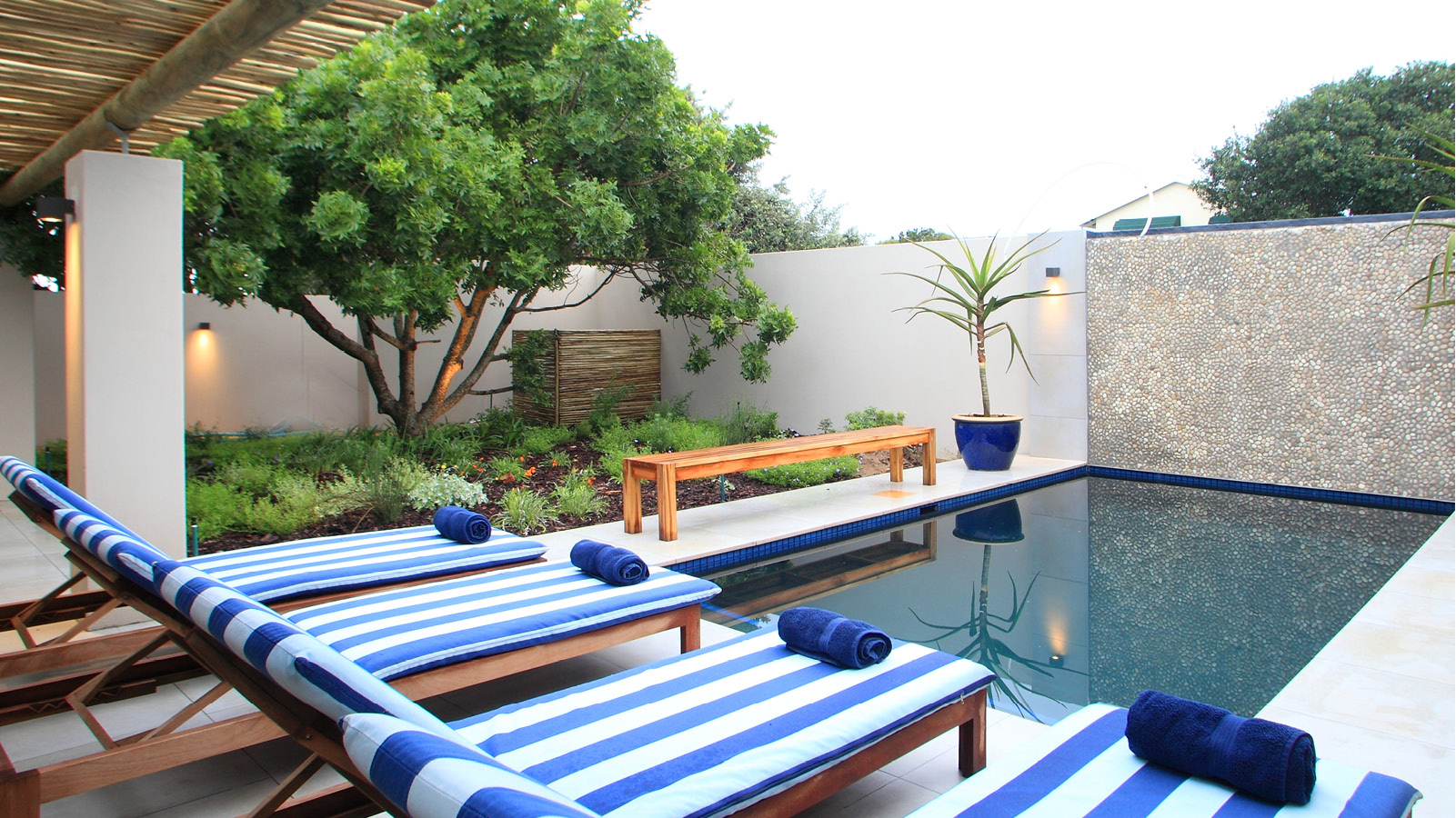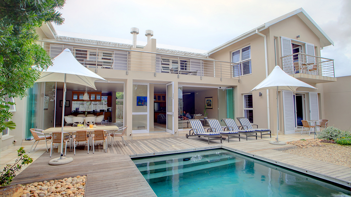 Overlooking a landscaped indigenous garden with salt water pool, Starfish Lodge is a 2 minute walk from the swimming beach of Robberg.